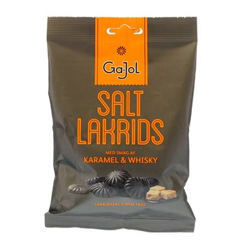 Gajol Licorice flavored with Whiskey and Caramel is the well-known salt licorice with a new and exciting taste. The pastilles in this 140g bag are slightly larger than the ones you know from the small original square box.