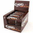 Corny Big bar with the taste of dark chocolate cookies is a good source of fiber and to keep the energy up during the day. The muesli bar contains small pieces of chocolate and a base coated with dark chocolate.