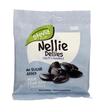 Nellie Dellie's salt licorice is made from the best raw licorice. The natural licorice is completely sugar-free as it is sweetened with Stevia, and the mixture of licorice and a salty taste is quite special in this little delicate bag. A really good bag of licorice - and 100% natural on top of that!