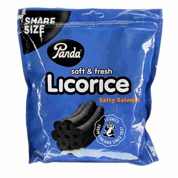 Panda Licorice Salty Salmiak is real soft Finnish licorice from Finland. The soft and fresh licorice has a fantastically strong and salty salmiak flavour. Panda Licorice is free of preservatives and contains only 0.4% fat. Contains 500 g.