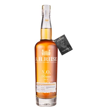 Ah Riise XO Reserve es un ron exquisito de las Indias Occidentales. Se combina a mano de varios destilados de ron diferentes que tienen hasta 20 años, y tiene un buen color dorado ligeramente de caoba. En el paladar, este ron está en una clase absolutamente especial con su sabor afrutado y completo con matices complejos de naranja, mango, papaya y vainilla con un retroceso aterciopelado y delicadamente dulce. La producción de este ron "Super Premium" es muy limitada. Cada barril es especialmente seleccionado por nuestro "Master Distiller" y embotellado simplemente "barril individual", cada botella también está marcada con una botella individual y un número de barril, así como la fecha de embotellado.