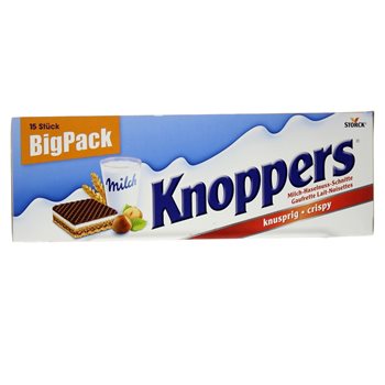 Un gran paquete de Knoppers con 15 PC. del bocadillo crujiente. Las rodajas pesan 25 g cada una y son prácticas para asumir la marcha o como una deliciosa sorpresa en un almuerzo lleno. Los bocadillos en capas consisten en gofres con crema de leche y crema de avellana nougat.